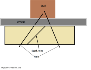 Most of the time the room dimensions will require splices in the baseboard. Now you could just butt joint at the splice but this would be a mistake. The splice would open up during a contraction period(normally cold weather) and your eye would catch that gap very easily. So how do you splice? You use a technique called a scarf joint.